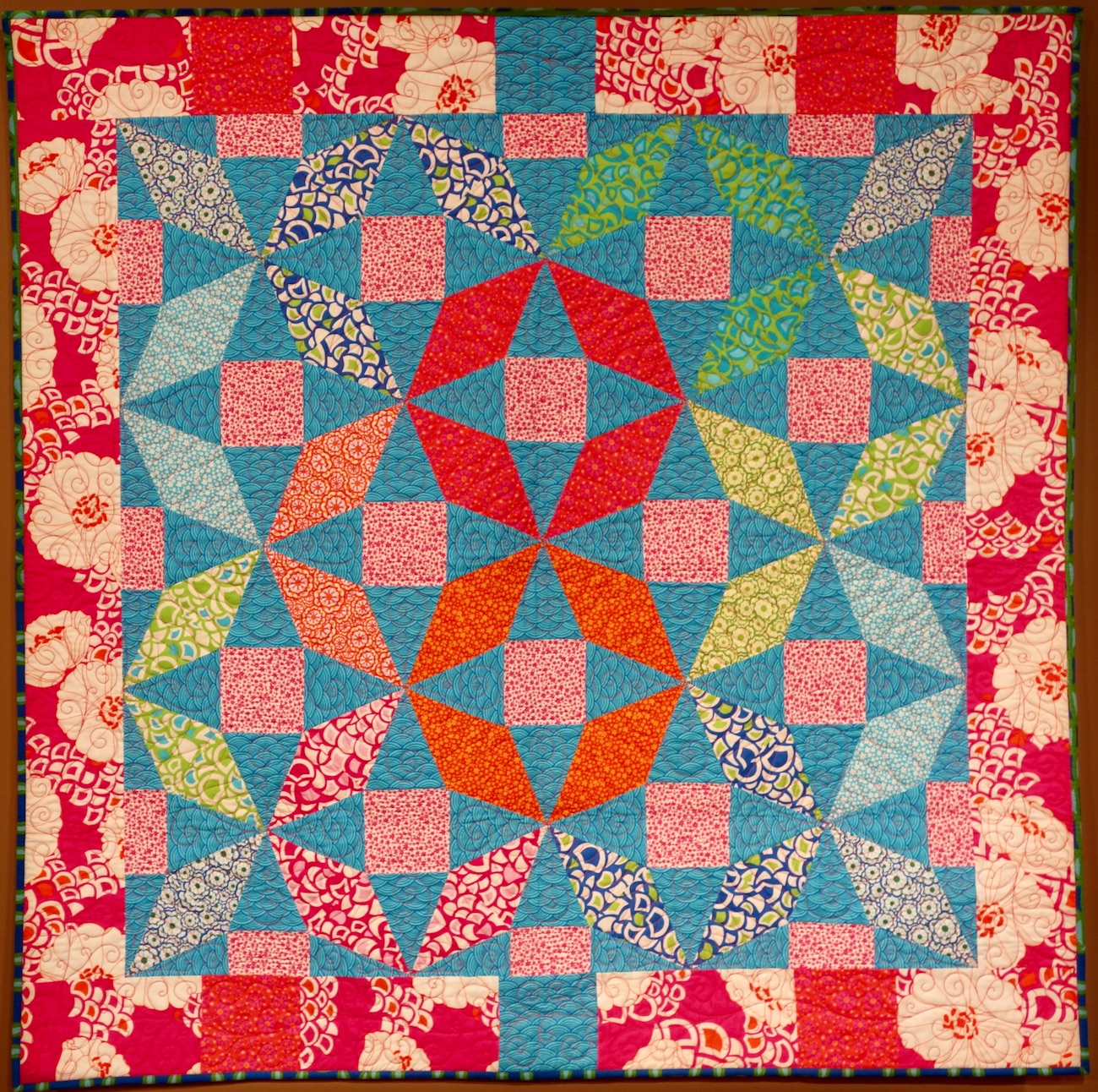 Ebony likes to brighten up traditional quilt blocks with bright blazing colors such as she did with "Hot Pants."