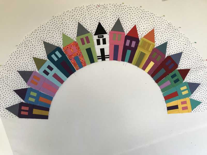 Another one of Wendy Williams' trademark circular quilts, Full Circle was designed exclusively as a Block Of the Month in 2020 for the Material Obsession quilt shop in Australia owned by Kathy Doughty (Show 2303). A sampler quilt full of geese, houses, and churn dashes, it is a large four-patch made with the same foundation piecing technique with freezer paper used for the 2021 BOM, Color My World.