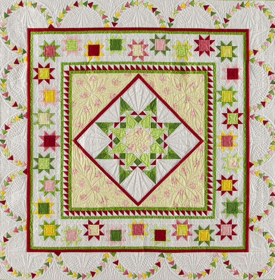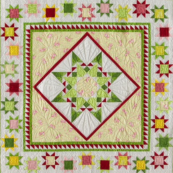 Join us on a new 12-month journey as we bring you bring you another spectacular quilt designed especially for TQS by Sue Garman (click here to learn more about Sue). The 2017 TQS BOM Halo Medallion Quilt features a stunning variation of a feathered star surrounded by multiple scrappy borders. As icing on the cake she has included flying geese rings and delectable mountain blocks. Once again Sue has created a quilt for you that is sure to be a family heirloom in your home.