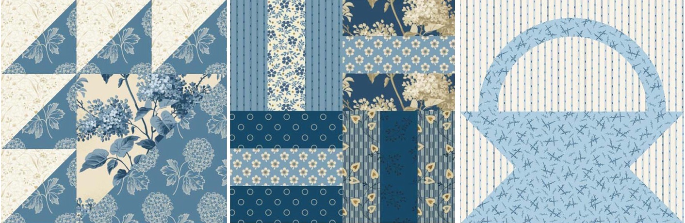 This month you'll be making three new blocks including simple strips, multi-sized half-square triangles and a lovely little basket. As before, each block will be made three times for a total of nine blocks.