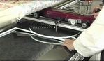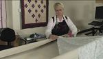 Posts On: December 7, 2010Linda demonstrates using a reference line to line up the quilt top as she gets ready to secure the top, batting, and lining (backing) together. After stitching down the left side and basting the right, she adds the clamps and is ready to quilt.