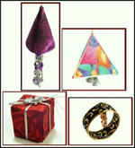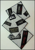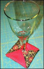 Description: Here is a fast and fun holiday project that you can make in just a few minutes! These ‘slippers’ are designed to cover the stem of a wineglass so they have a ‘built-in’ coaster. Perfect for parties where your guests wander around with their drinks; they’ll prevent those rings on your good coffee table when things get boisterous! Make a set with different fabrics and they can be used as glass identifiers too.