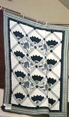 TnHoney Blue Romantic Fans - Each fan piece of the quilt was fussy cut. Used hot fix swarvoski crystals to embellish.