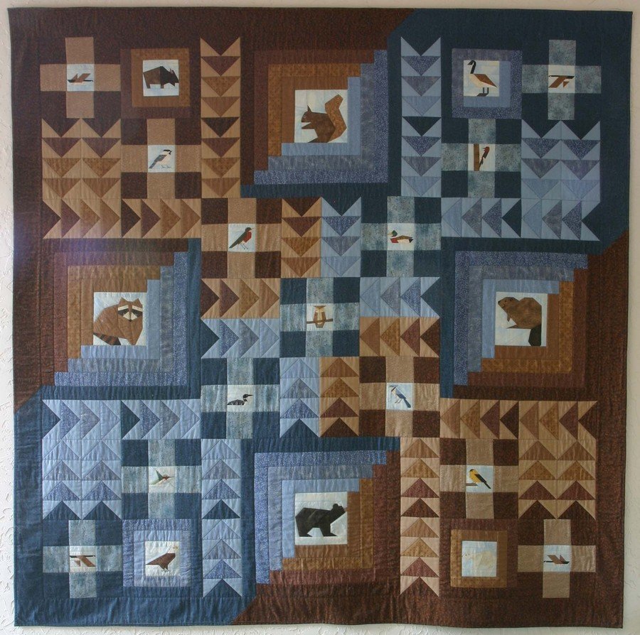 KathyAnn Between Earth and Sky - This was my first large sized quilt. I wanted to make a quilt which would use the largest number of Margaret Rolfe's paper pieced animals. I saw a quilt made by Flo Burghardt in a book which I used as a basis for this quilt which I designed on EQ-4.