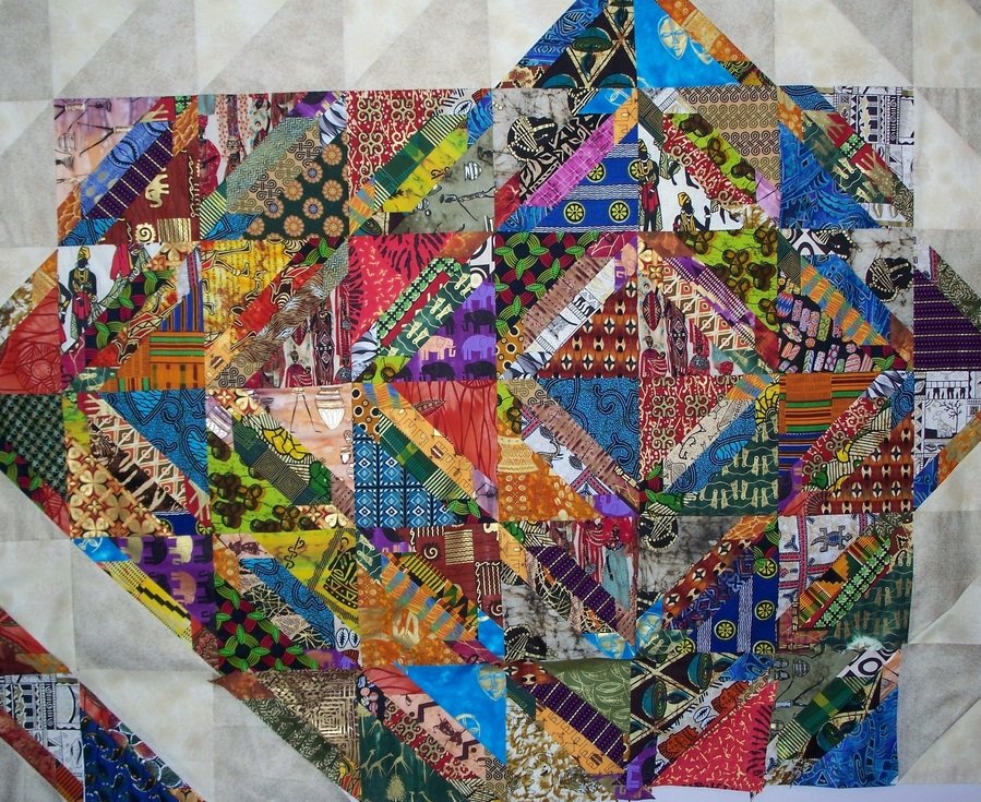 | Design Source - Description | Made from my stash of mostly authentic African fabrics. Sandi Wagner quilted a zoo full of African animals in to the beig background blocks. |