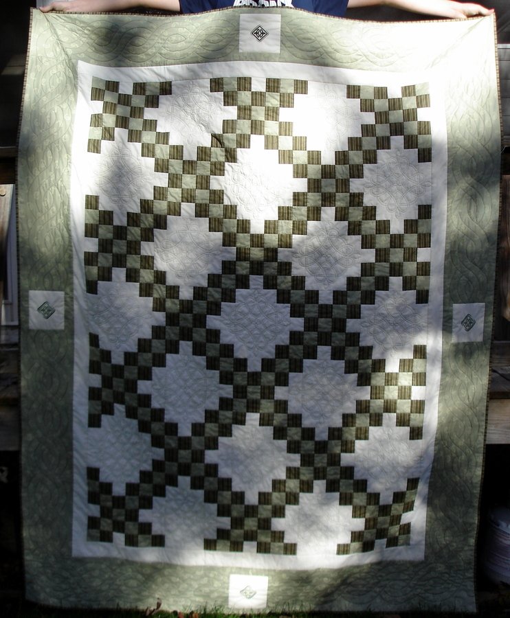 katherinequilts Irish Chain - This was made as a gift for my daughter who loves her Irish heritage. I designed my own borders using a celtic symbol. Size is approximate because my borders were a little different from the book and I did it by what suited me visually....didn't measure after it was all done!
