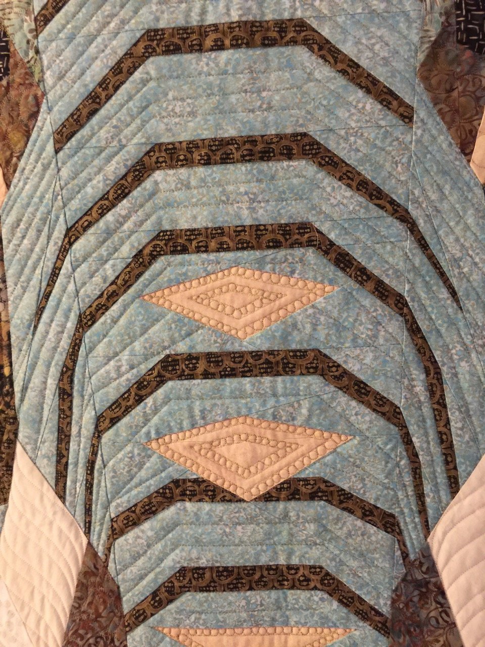 This is my version of Violet Craft's "Elephant Abstraction" . I had lots of fun piecing and quilting this one. Metallic thread helps give Stella some "jewelry" on her trunk and ears.